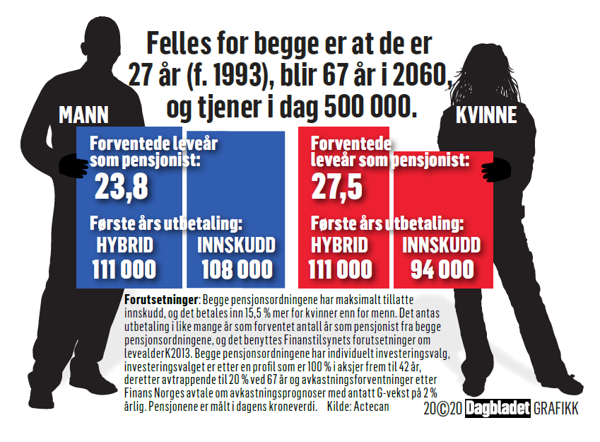 Eksempel på forskjell mellom hybrid- og innskuddspensjon