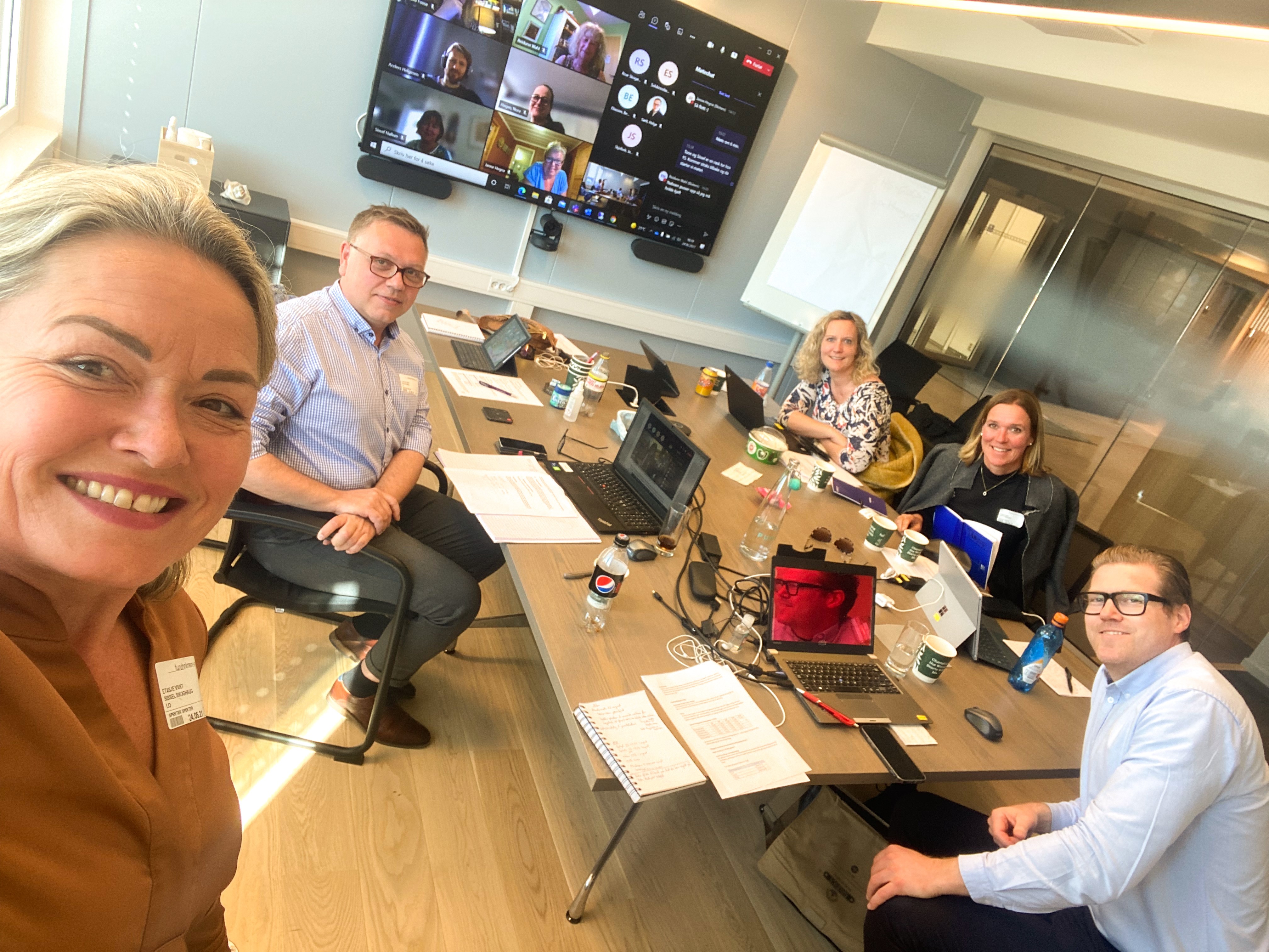 LOs forhandlingsdelegasjon i innspurten: f.v forhandlingsleder Sissel M. Skoghaug (Fagforbundet), Helge Sørli (spesialrådgiver, Fagforbundet), Tone Faugli (leder i Fagforbundets forhandlingsenhet), Marit Selfors Isaksen (FOs arbeidsutvalg) og Kai Nygård (nestleder i Fagforbundets forhandlingsenhet).