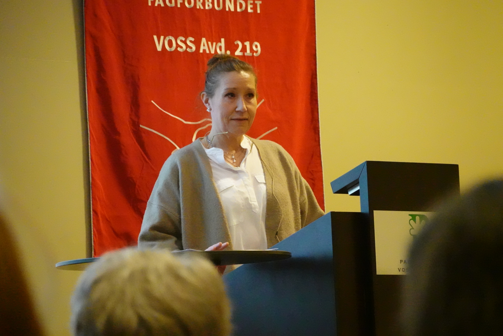 Fagforbundet Voss heldt årsmøte 27. jan på Park Hotel. Stødig leia av leiar Olaug Kyte, fekk dei ca 100 frammøte høyra innlegg av vår gjest Charlotte Lygre Ellefsen, Opplæringsansvarleg i Fagforbundet Vestland. Kirsten Øvebø vart velfortent takka av for lang og tru teneste. Vi avslutta med middag for alle. Takk til alle involverte og oppmøtte for eit vel gjennomført årsmøte.🚩