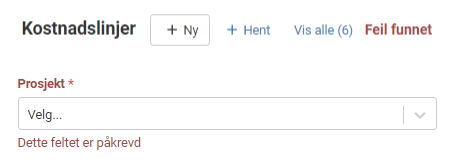 Trykk Ny på Kostnadslinjer, og gjenta det ovenfor.