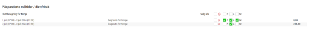 Hver utgift/kostnad må legges inn som en ny kostnadslinje. Altså ny kostnadslinje for hver vei for tog og bilgodtgjørelse.
