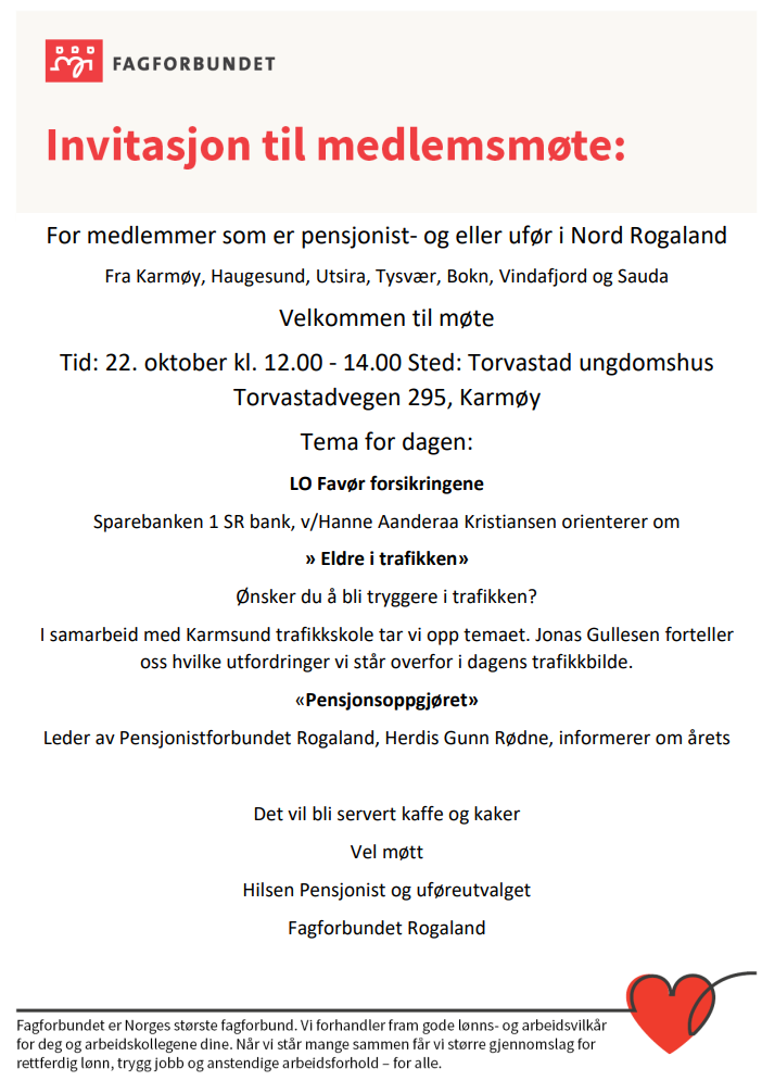 For medlemmer som er pensjonist- og eller ufør i Nord Rogaland