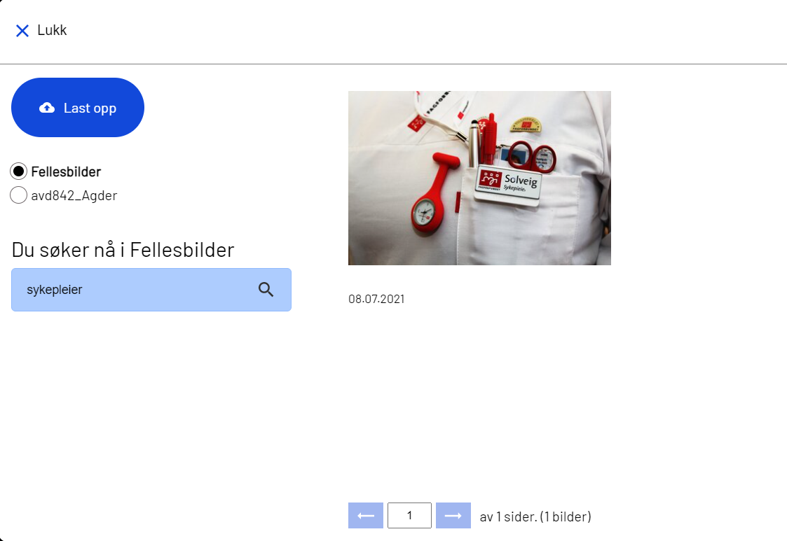 Nå kommer du inn i bildevelgeren. Hvis du er webansvarlig vil du få opp fellesbilder og bilder som hører til din forening.