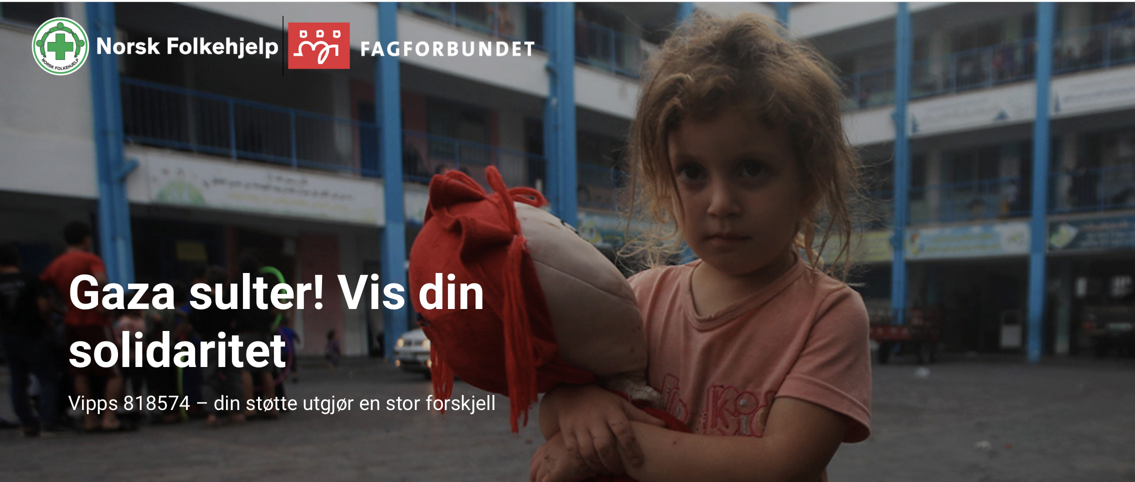Støtt Fagforbundets innsamlingsaksjon til Gaza! VIPPS #818574